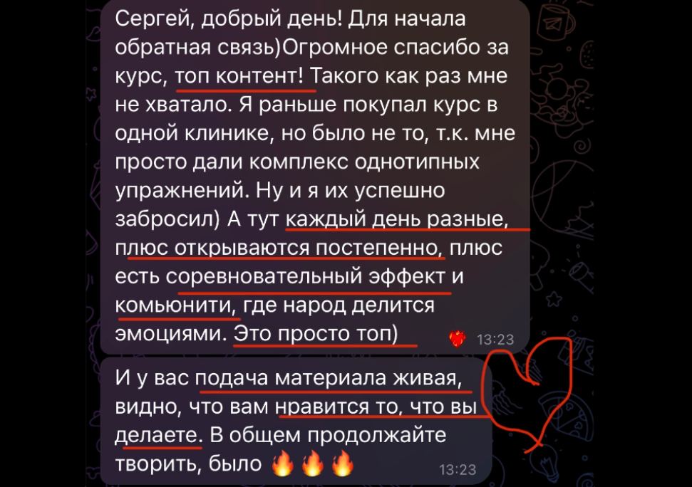Я специально ввел ограничение по времени, чтобы вы не откладывали занятия в дальний ящик. Наверняка вы уже покупали обучения или товары в надежде, что однажды воспользуетесь ими. Нет, у нас так не работает. Мне важно, чтобы вы были здоровы и активны. А для этого нужно начать выполнять тренировки прямо сейчас. Если вы хотите купить курс, пройти его как-нибудь потом, а затем и вовсе забыть про него, то лучше не тратьте деньги и не покупайте. Мы настроены на работу, изменения и результаты, для этого нужно сразу начать заниматься!